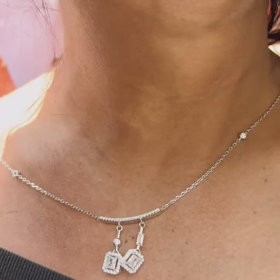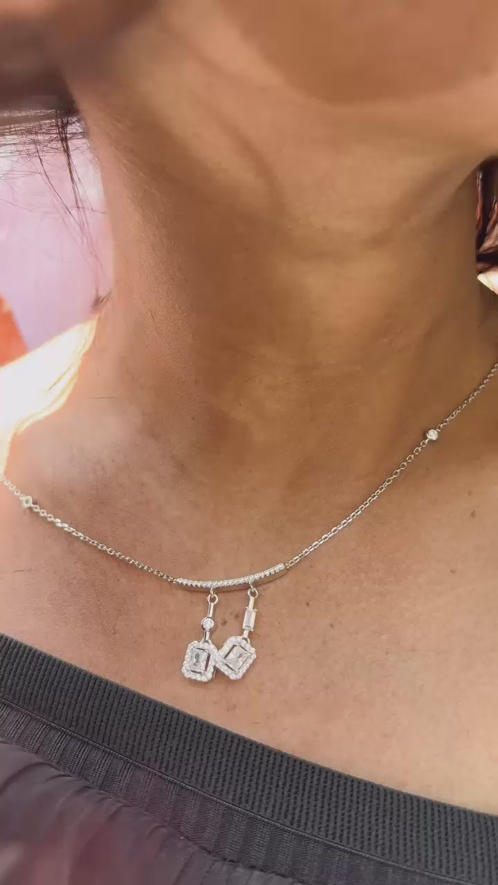 The 92.5 Silver Double Solitaire Drop Necklace is exceptionally stylish, sophisticated, and truly unique. Its chic and elegant design makes it a standout piece for those who crave distinction.