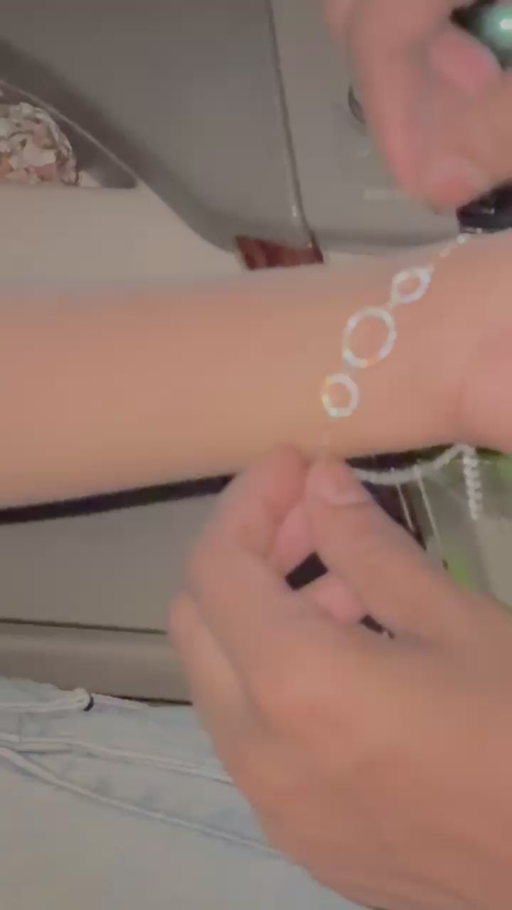 The Endless Loop Bracelet features sparkling cubic zirconia stones set in sterling silver, creating a delicate and elegant design. Symbolizing continuity and infinite possibilities, this bracelet is a thoughtful gift or a meaningful addition to your jewelry collection. Its comfortable fit makes it perfect for everyday wear, adding a touch of brilliance to any outfit.